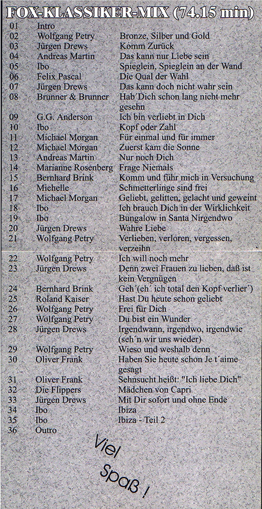 Fox Records präsentiert Deutscher Fox-Mix Klassiker Teil Eins.