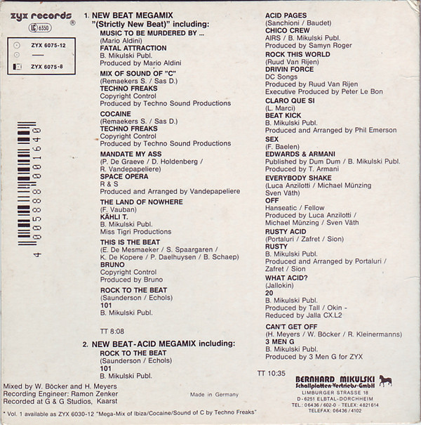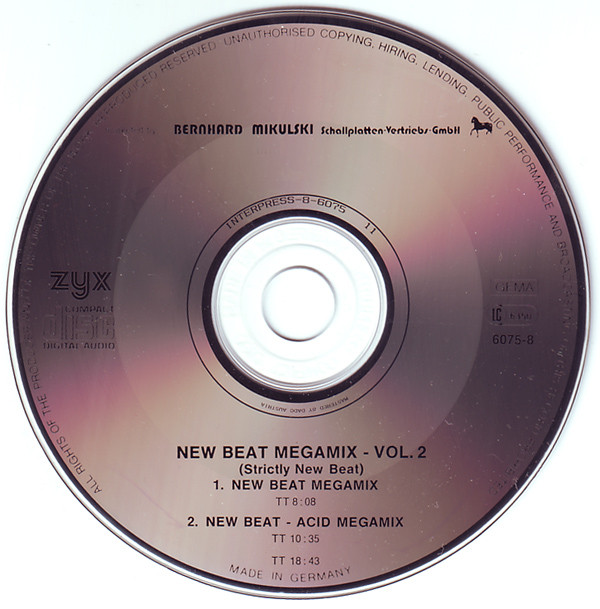 Bernhard Mikulski Schallplatten Vertrieb präsentiert New Beat Megamix Volume 2, gemixt von H. Meyers & W. Böcker. Teil 1 erschien bei BCM, daher ist der Mix hier auch gelistet.