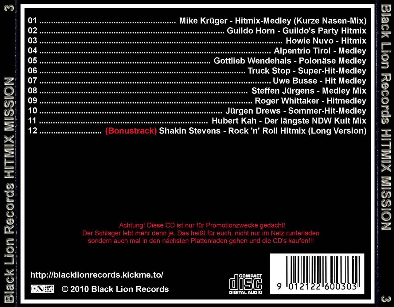 Black Lion Records präsentiert den Hitmix Mission Volume 3.