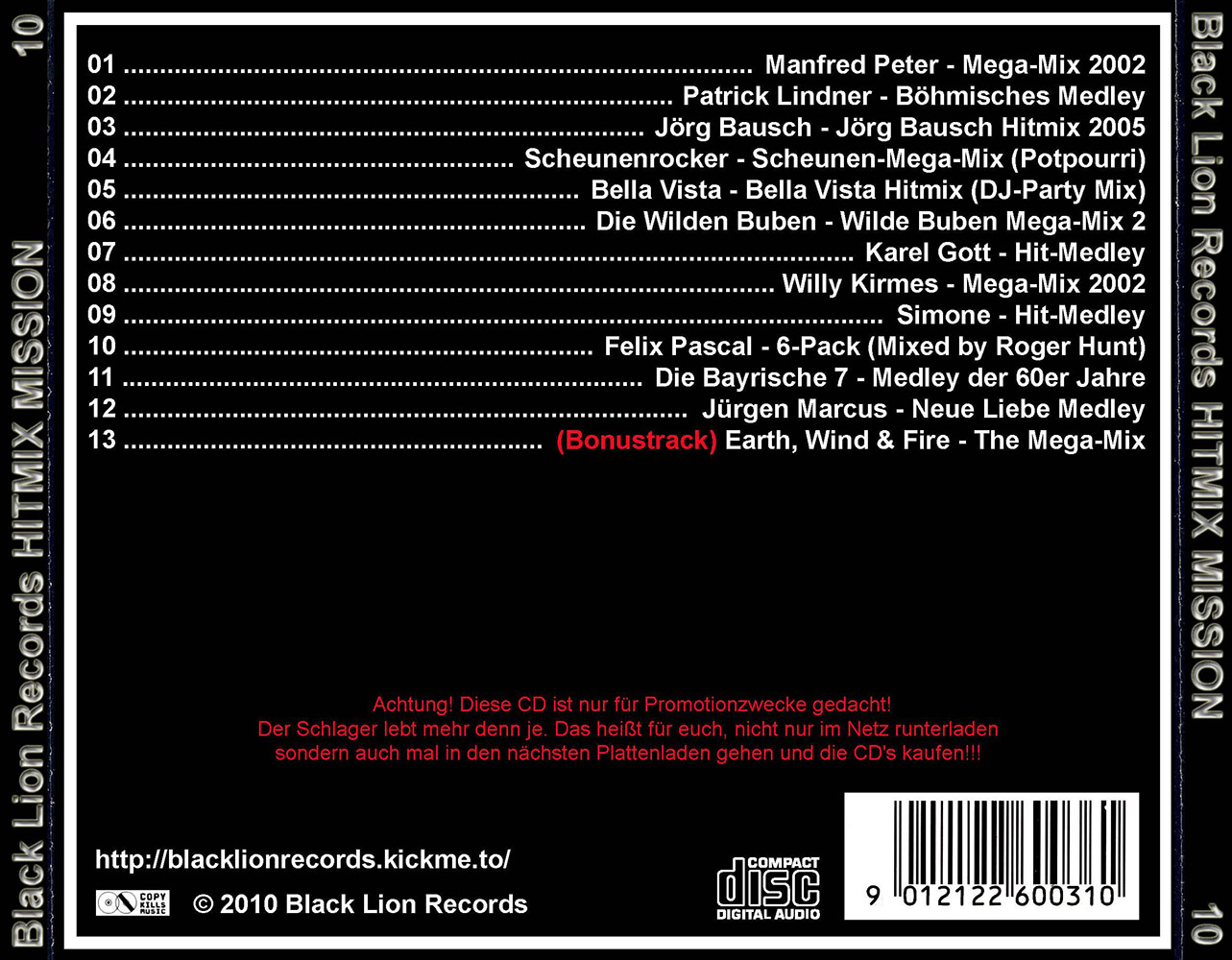 Black Lion Records präsentiert den Hitmix Mission Volume 10.