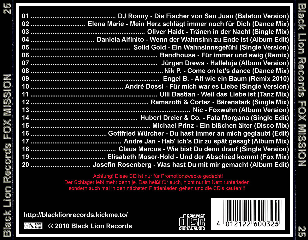 Black Lion Records präsentiert den Fox Mission Volume 25.