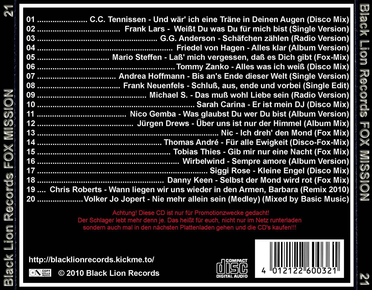 Black Lion Records präsentiert den Fox Mission Volume 21.