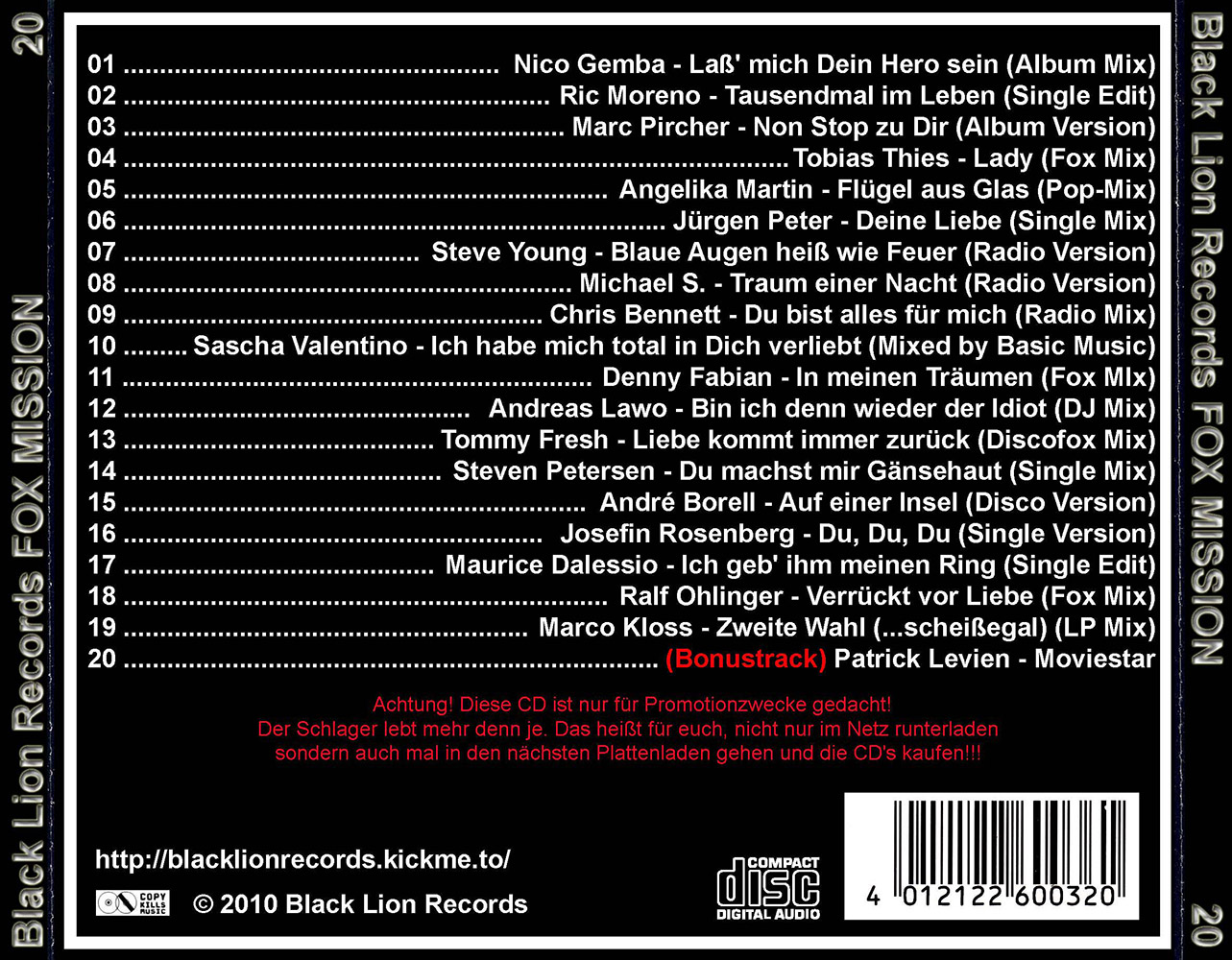 Black Lion Records präsentiert den Fox Mission Volume 20.
