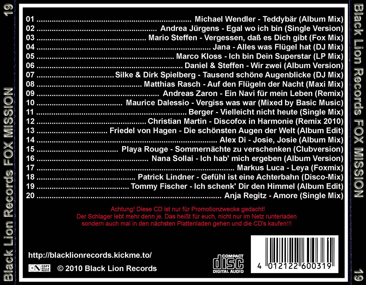 Black Lion Records präsentiert den Fox Mission Volume 19.