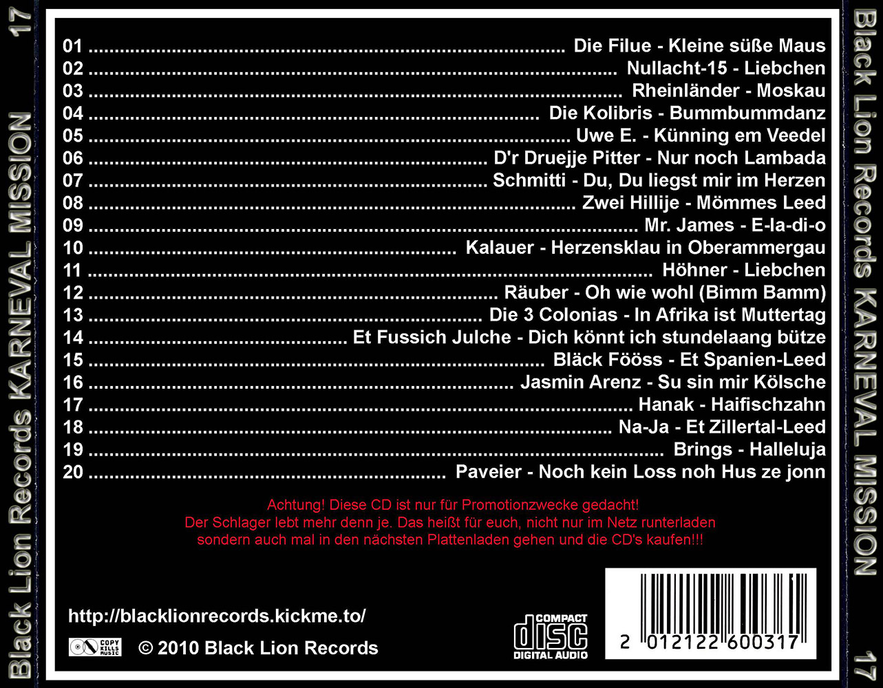 Black Lion Records präsentiert den Karneval Mission Volume 17.