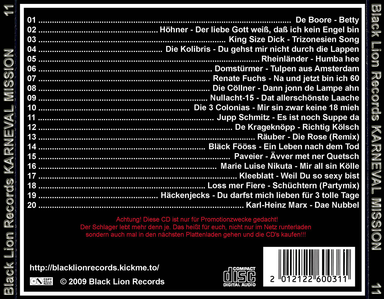 Black Lion Records präsentiert den Karneval Mission Volume 11.