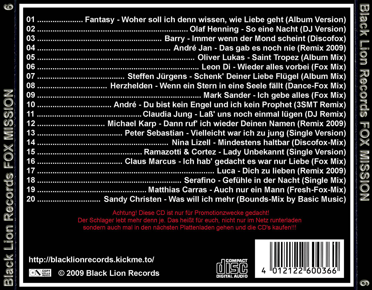 Black Lion Records präsentiert den Fox Mission Volume 6.