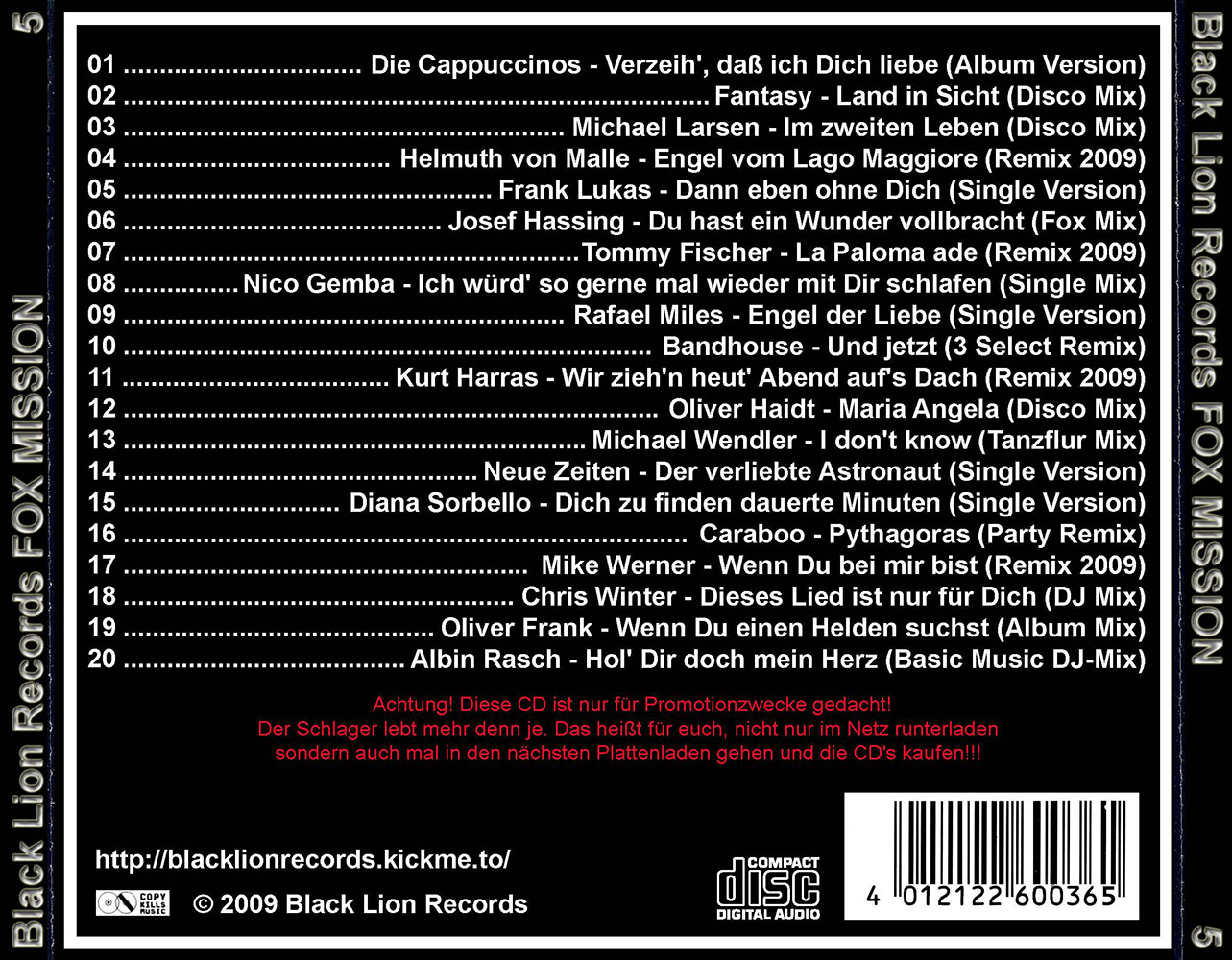 Black Lion Records präsentiert den Fox Mission Volume 5.