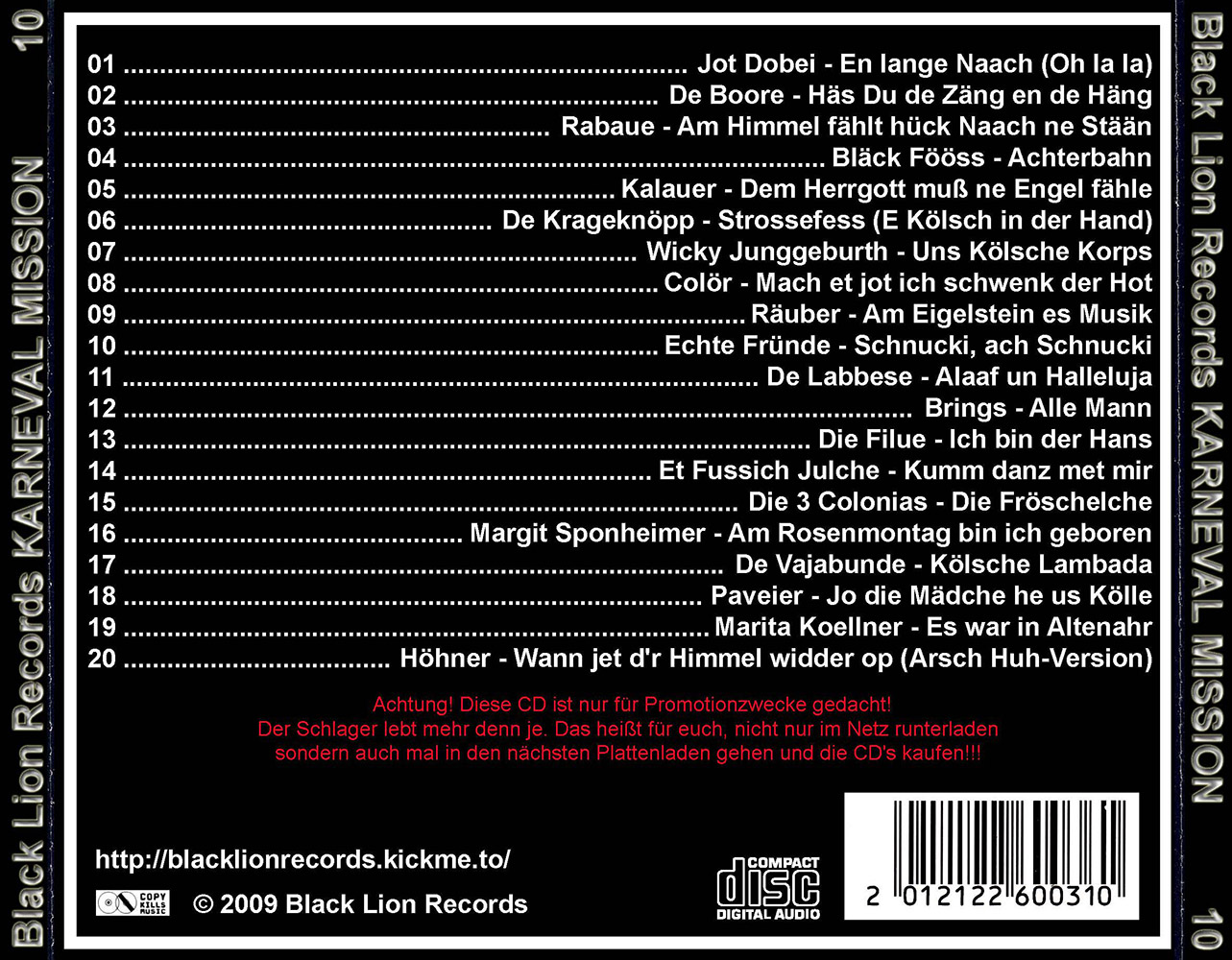 Black Lion Records präsentiert den Karneval Mission Volume 10.