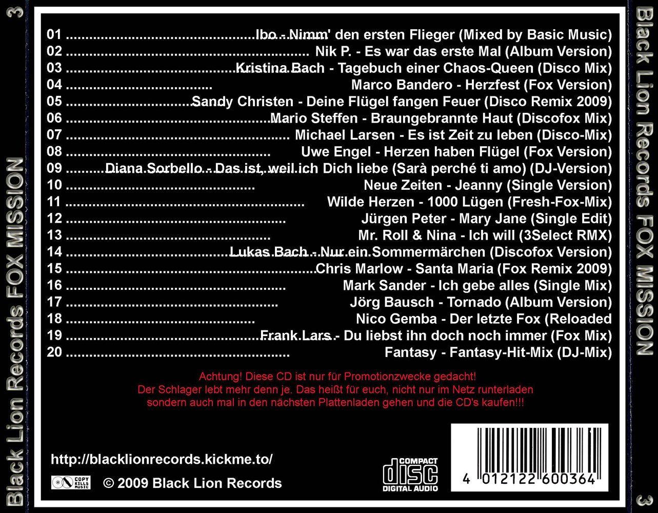 Black Lion Records präsentiert den Fox Mission Volume 3.