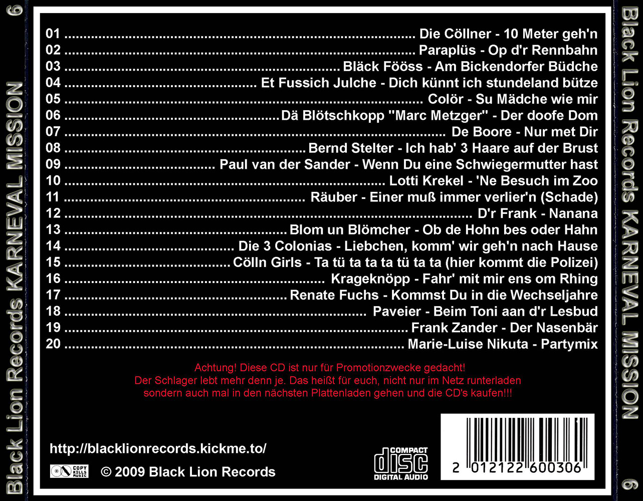 Black Lion Records präsentiert den Karneval Mission Volume 6.