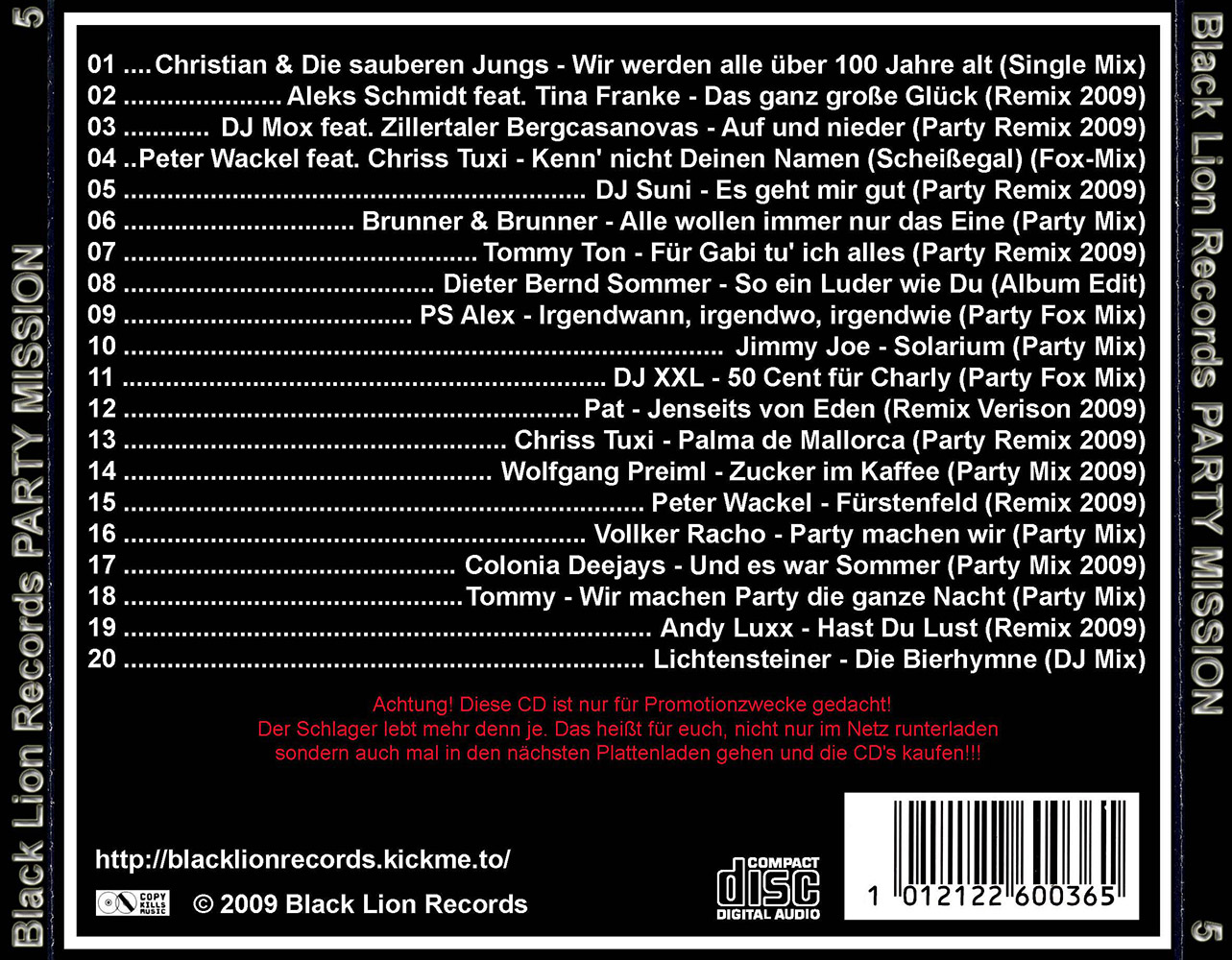 Black Lion Records präsentiert den Party Mission Volume 5.