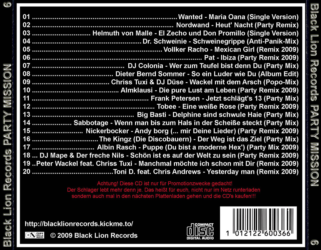 Black Lion Records präsentiert den Party Mission Volume 6.