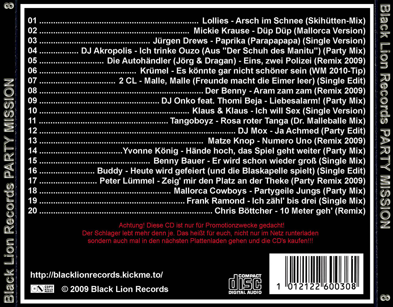 Black Lion Records präsentiert den Party Mission Volume 8.