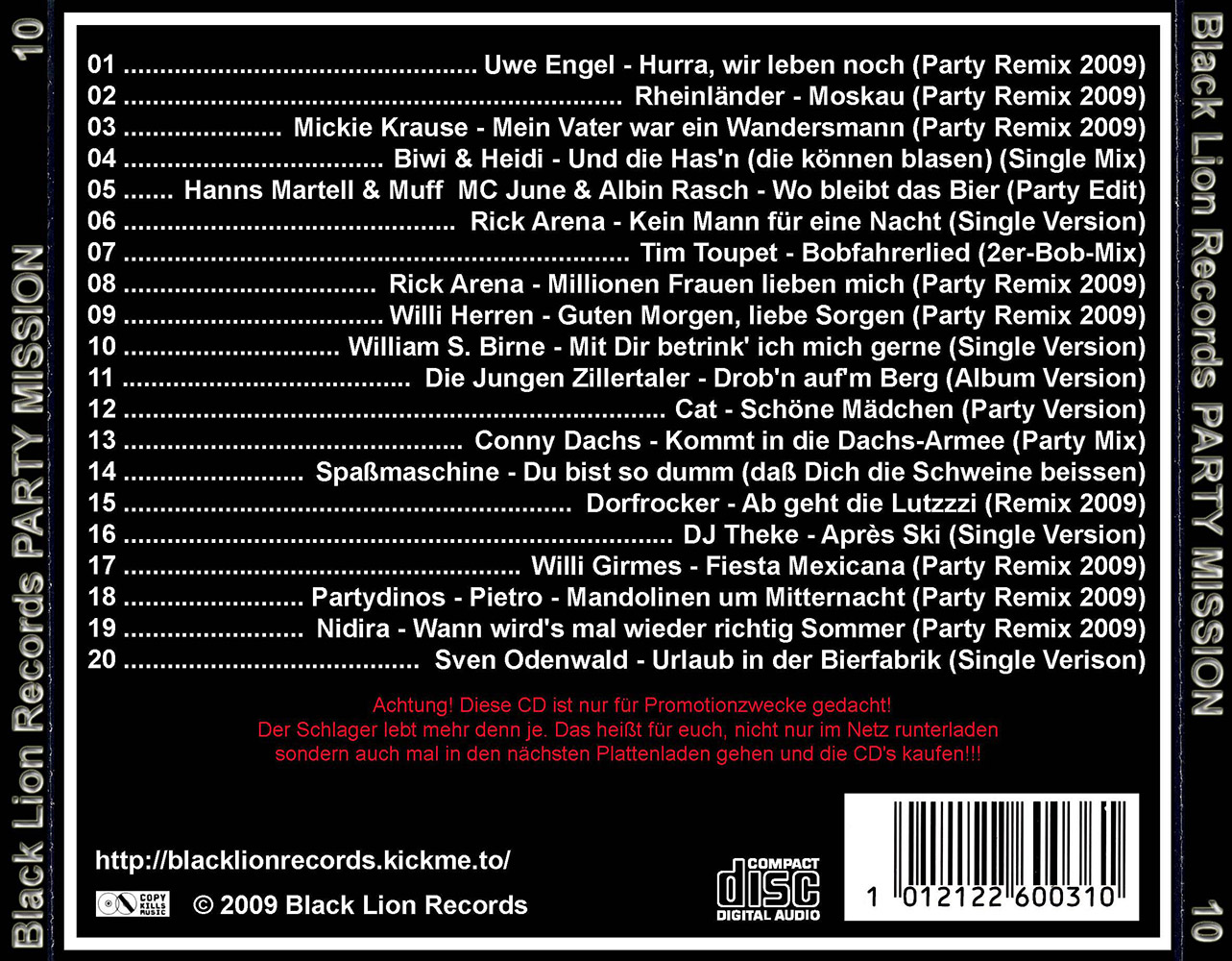 Black Lion Records präsentiert den Party Mission Volume 10.