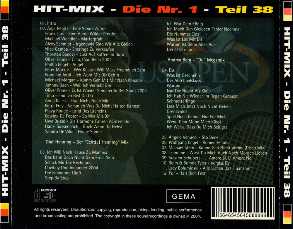 Kurzbeschreibung: Hit-Mix Records präsentiert Hit-Mix Die Nr. 1 Teil 38. Gutes Aus Deutschen Landen... Entspricht in großen Teilen dem Fox & Dance 8th Edition.